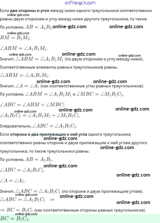 § 7. Равные треугольники. Высота, медиана, биссектриса треугольника