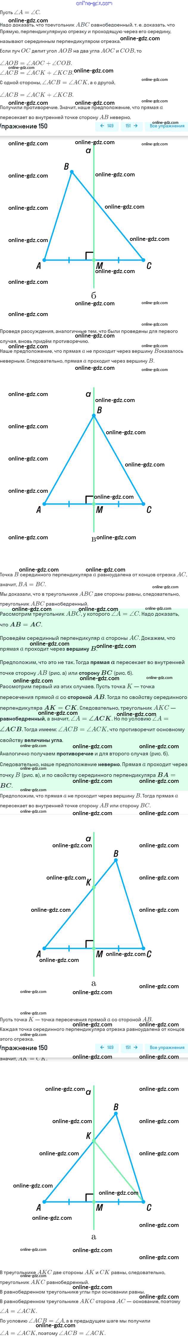 Готовые домашние задания по Геометрии за 7 класс Рабочая тетрадь Мерзляк, Полонский Алгоритм успеха 2017 - § 10. Признаки равнобедренного треугольника 150