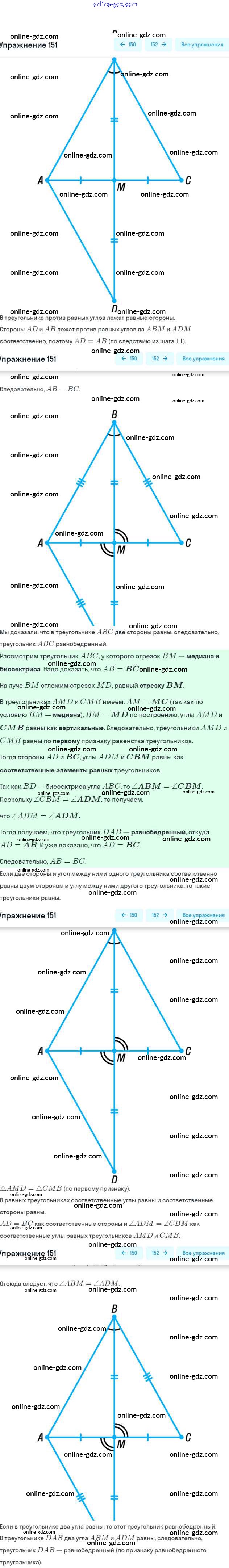 Готовые домашние задания по Геометрии за 7 класс Рабочая тетрадь Мерзляк, Полонский Алгоритм успеха 2017 - § 10. Признаки равнобедренного треугольника 151