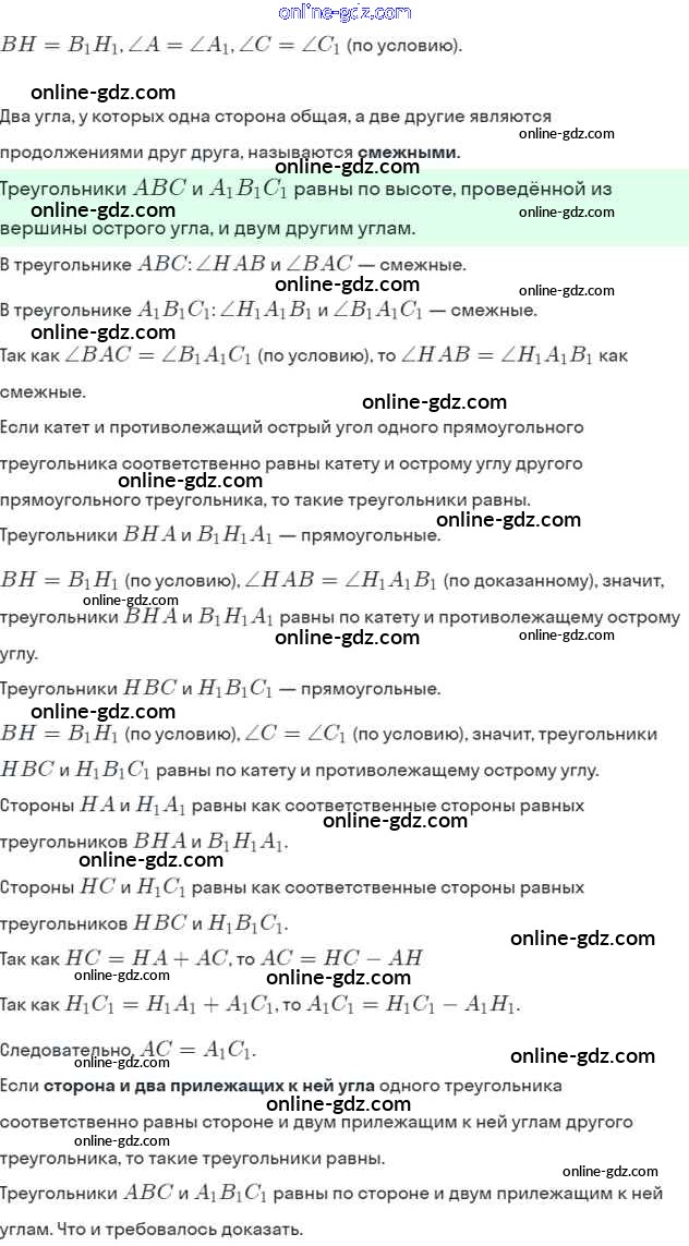 § 7. Равные треугольники. Высота, медиана, биссектриса треугольника