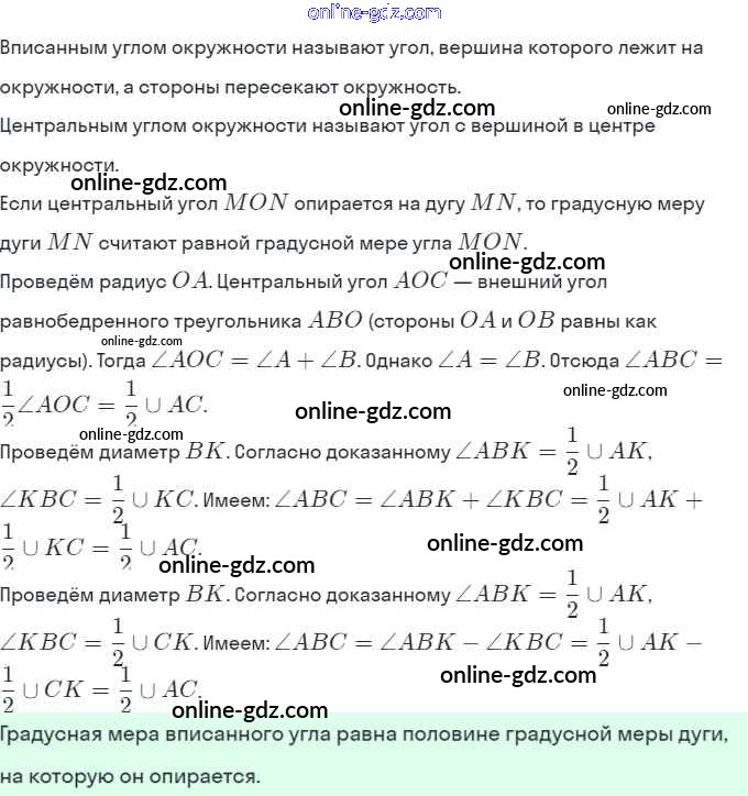 Готовые домашние задания по Геометрии за 8 класс Рабочая тетрадь Мерзляк, Полонский Алгоритм успеха 2021 - §9. Центральные и вписанные углы 145