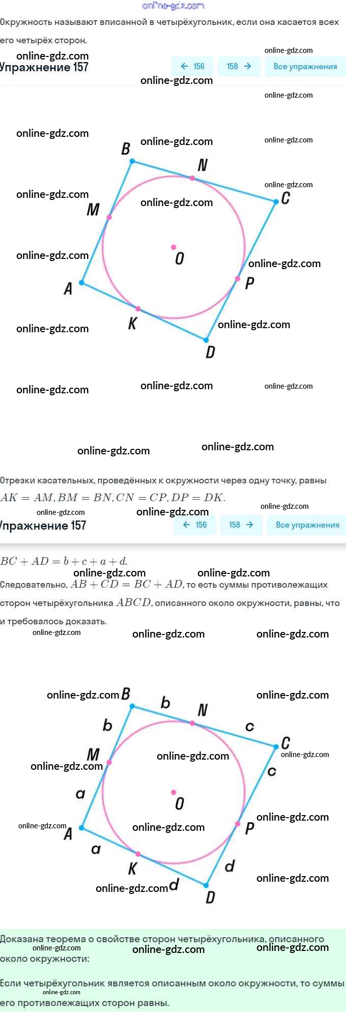 Готовые домашние задания по Геометрии за 8 класс Рабочая тетрадь Мерзляк, Полонский Алгоритм успеха 2021 - §10. Описанная и вписанная окружности четырёхугольника 157