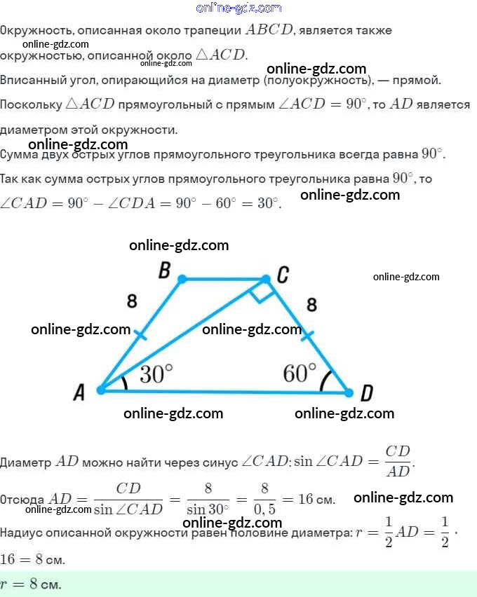 Готовые домашние задания по Геометрии за 8 класс Рабочая тетрадь Мерзляк, Полонский Алгоритм успеха 2021 - §10. Описанная и вписанная окружности четырёхугольника 170