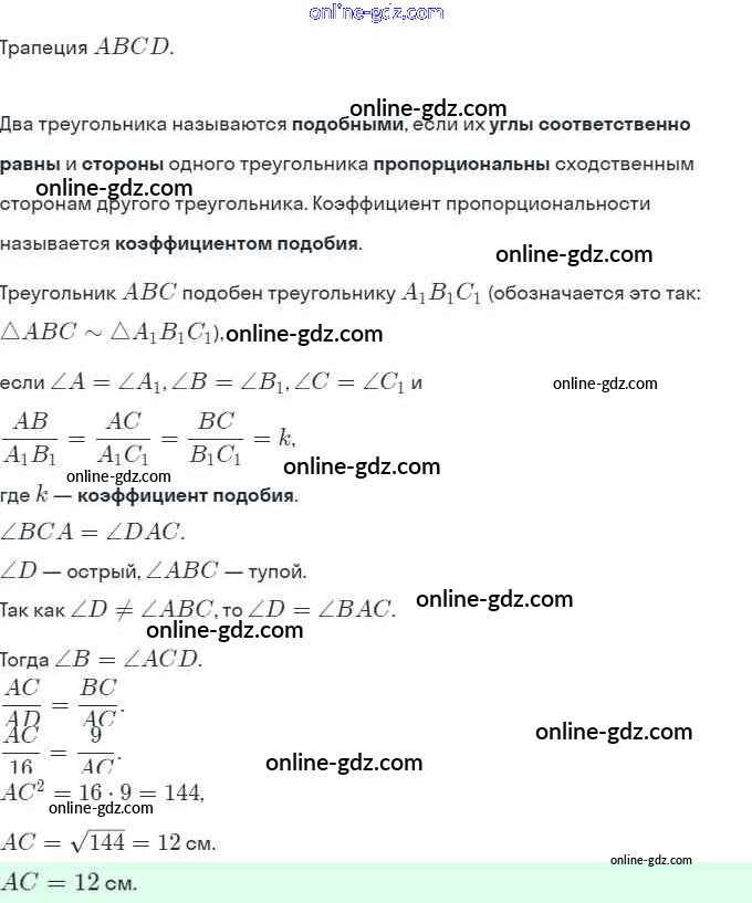 Готовые домашние задания по Геометрии за 8 класс Рабочая тетрадь Мерзляк, Полонский Алгоритм успеха 2021 - §12. Подобные треугольники 216