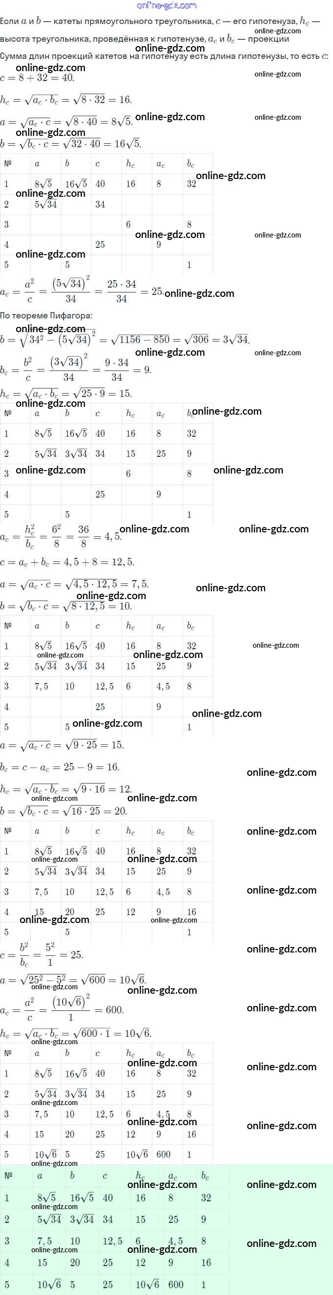 Готовые домашние задания по Геометрии за 8 класс Рабочая тетрадь Мерзляк, Полонский Алгоритм успеха 2021 - §15. Метрические соотношения в прямоугольном треугольнике 250