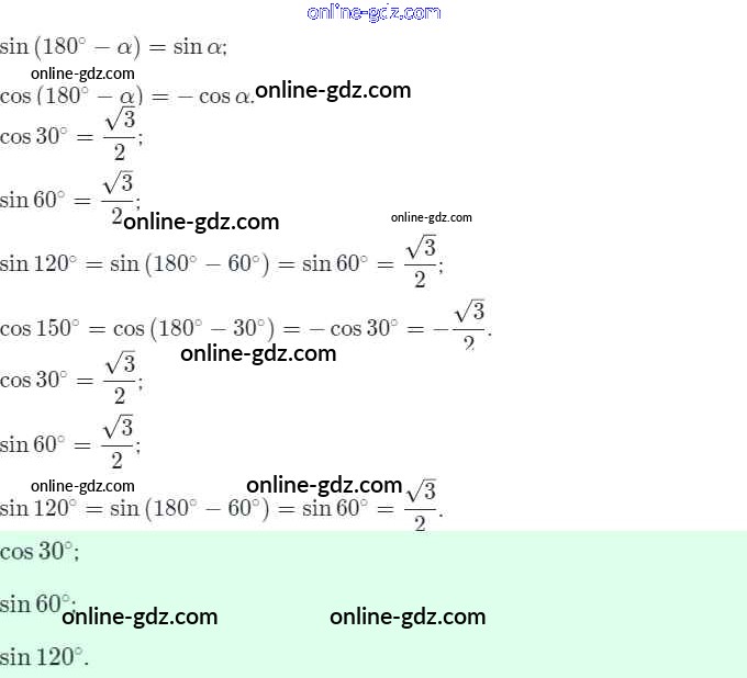 Готовые домашние задания по Геометрии за 9 класс Рабочая тетрадь Мерзляк, Полонский Алгоритм успеха 2021 - §1. Тригонометрические функции угла от 0° до 180° 7