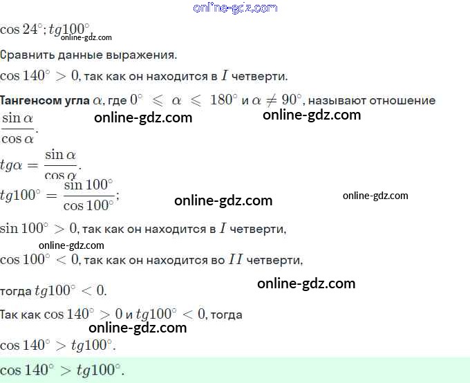Готовые домашние задания по Геометрии за 9 класс Рабочая тетрадь Мерзляк, Полонский Алгоритм успеха 2021 - §1. Тригонометрические функции угла от 0° до 180° 8