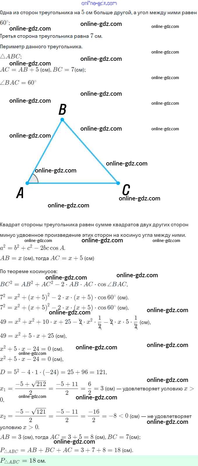 Готовые домашние задания по Геометрии за 9 класс Рабочая тетрадь Мерзляк, Полонский Алгоритм успеха 2021 - §2. Теорема косинусов 30