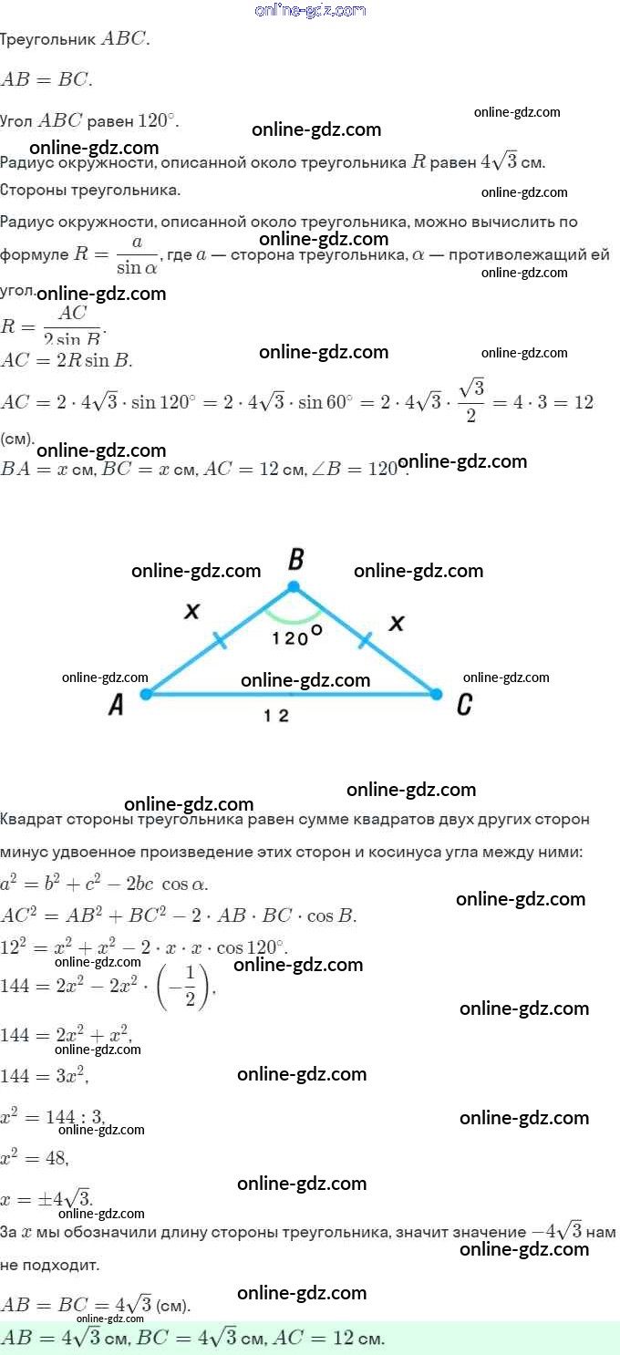 Готовые домашние задания по Геометрии за 9 класс Рабочая тетрадь Мерзляк, Полонский Алгоритм успеха 2021 - §3. Теорема синусов 45