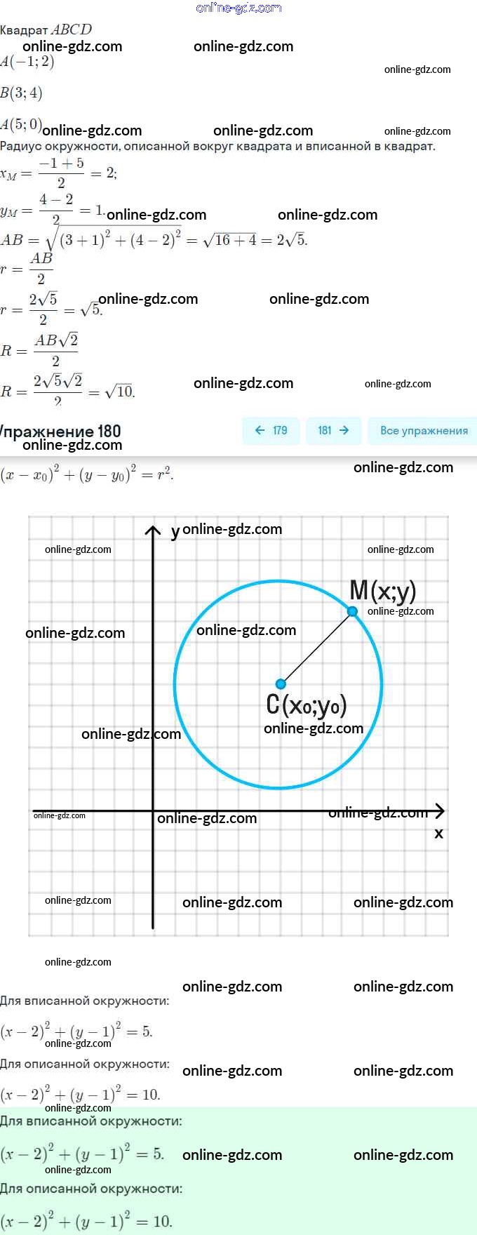 Готовые домашние задания по Геометрии за 9 класс Рабочая тетрадь Мерзляк, Полонский Алгоритм успеха 2021 - §9. Уравнение фигуры. Уравнение окружности 180