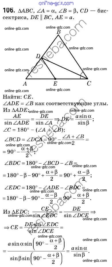 Готовые домашние задания по Геометрии за 9 класс Учебник Мерзляк, Полонский 2016 - Задачи 106