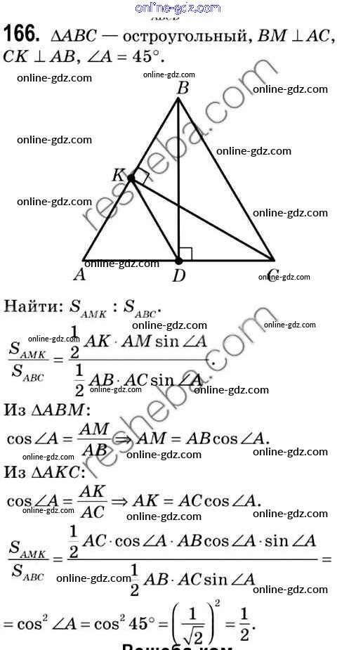 Готовые домашние задания по Геометрии за 9 класс Учебник Мерзляк, Полонский 2016 - Задачи 166
