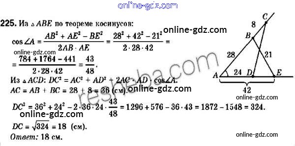 Готовые домашние задания по Геометрии за 9 класс Учебник Мерзляк, Полонский 2016 - Задачи 225