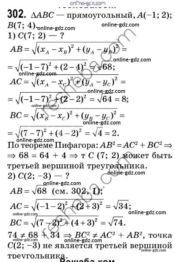 Готовые домашние задания по Геометрии за 9 класс Учебник Мерзляк, Полонский 2016 - Задачи 302