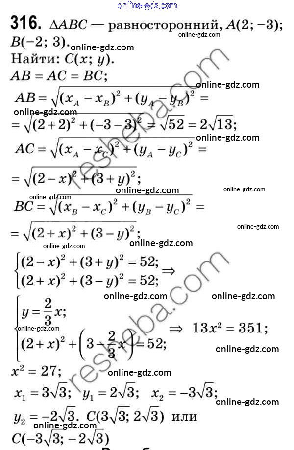 Готовые домашние задания по Геометрии за 9 класс Учебник Мерзляк, Полонский 2016 - Задачи 316
