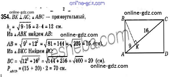 Готовые домашние задания по Геометрии за 9 класс Учебник Мерзляк, Полонский 2016 - Задачи 354