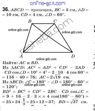 Готовые домашние задания по Геометрии за 9 класс Учебник Мерзляк, Полонский 2016 - Задачи 36