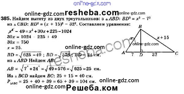 Готовые домашние задания по Геометрии за 9 класс Учебник Мерзляк, Полонский 2016 - Задачи 385