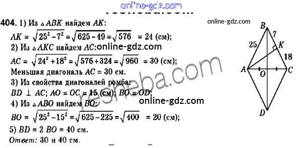 Готовые домашние задания по Геометрии за 9 класс Учебник Мерзляк, Полонский 2016 - Задачи 404
