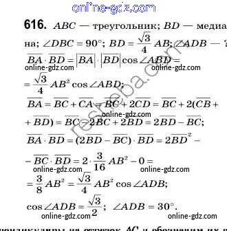 Готовые домашние задания по Геометрии за 9 класс Учебник Мерзляк, Полонский 2016 - Задачи 616