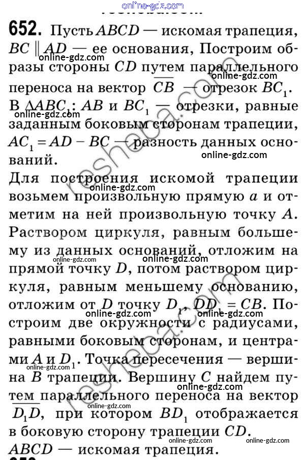Готовые домашние задания по Геометрии за 9 класс Учебник Мерзляк, Полонский 2016 - Задачи 652