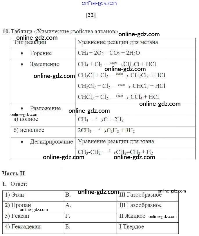 Готовые домашние задания по Химии за 10 класс Рабочая тетрадь Габриелян, Сладков Вертикаль Базовый уровень 2017 - Страницы 22