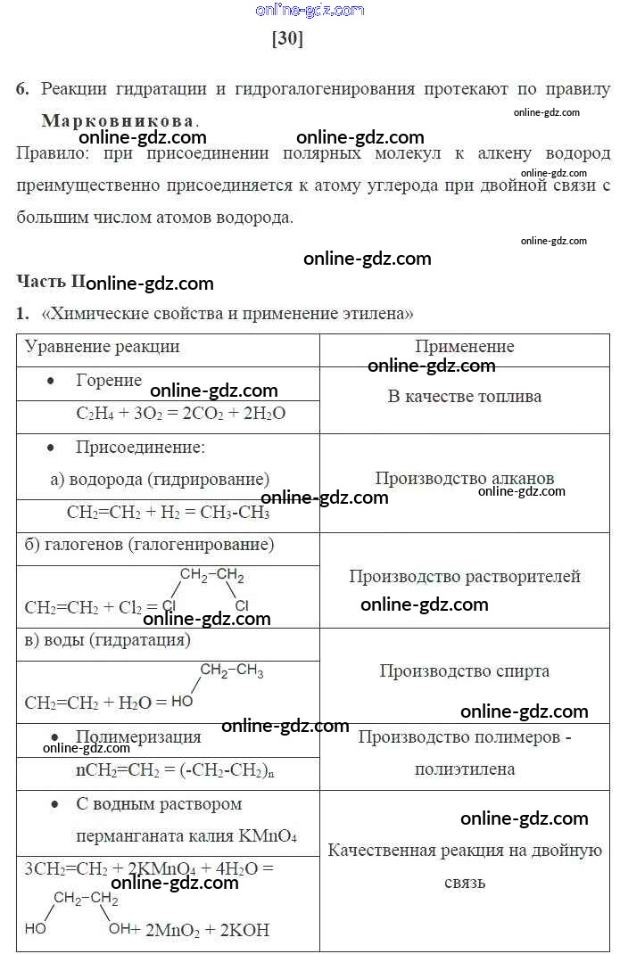 Готовые домашние задания по Химии за 10 класс Рабочая тетрадь Габриелян, Сладков Вертикаль Базовый уровень 2017 - Страницы 30