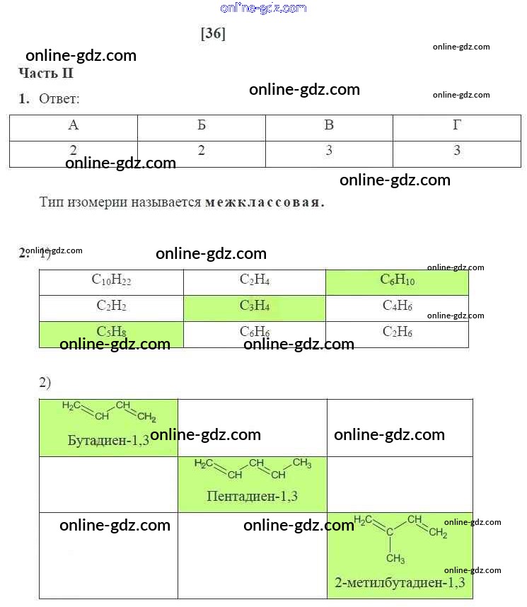 Готовые домашние задания по Химии за 10 класс Рабочая тетрадь Габриелян, Сладков Вертикаль Базовый уровень 2017 - Страницы 36