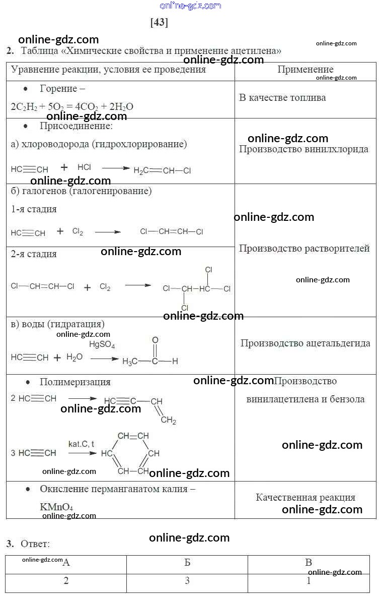 Готовые домашние задания по Химии за 10 класс Рабочая тетрадь Габриелян, Сладков Вертикаль Базовый уровень 2017 - Страницы 43
