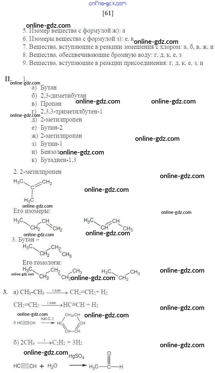 Готовые домашние задания по Химии за 10 класс Рабочая тетрадь Габриелян, Сладков Вертикаль Базовый уровень 2017 - Страницы 61