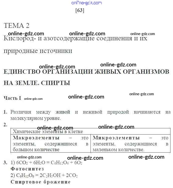 Готовые домашние задания по Химии за 10 класс Рабочая тетрадь Габриелян, Сладков Вертикаль Базовый уровень 2017 - Страницы 63
