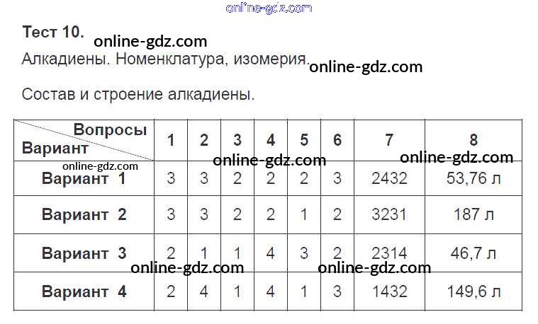 Готовые домашние задания по Химии за 10 класс Тесты Боровских УМК 2013 - Тесты 10