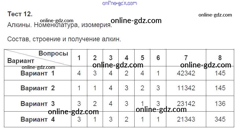 Готовые домашние задания по Химии за 10 класс Тесты Боровских УМК 2013 - Тесты 12