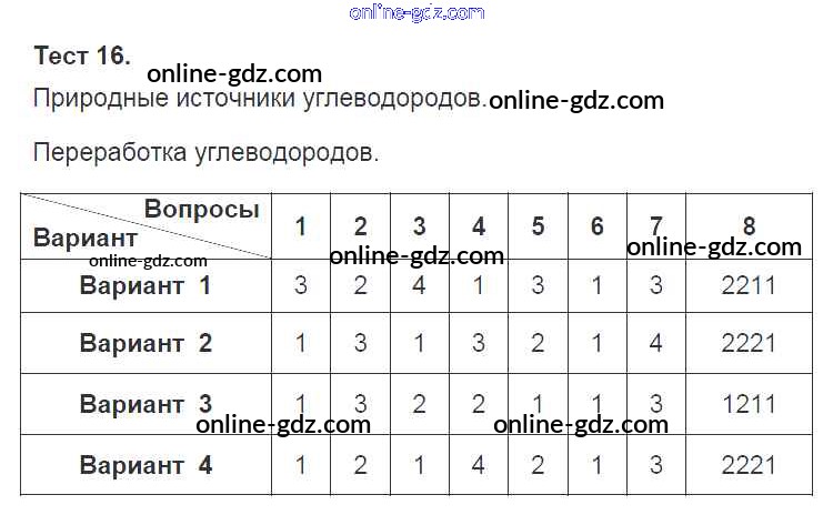 Готовые домашние задания по Химии за 10 класс Тесты Боровских УМК 2013 - Тесты 16