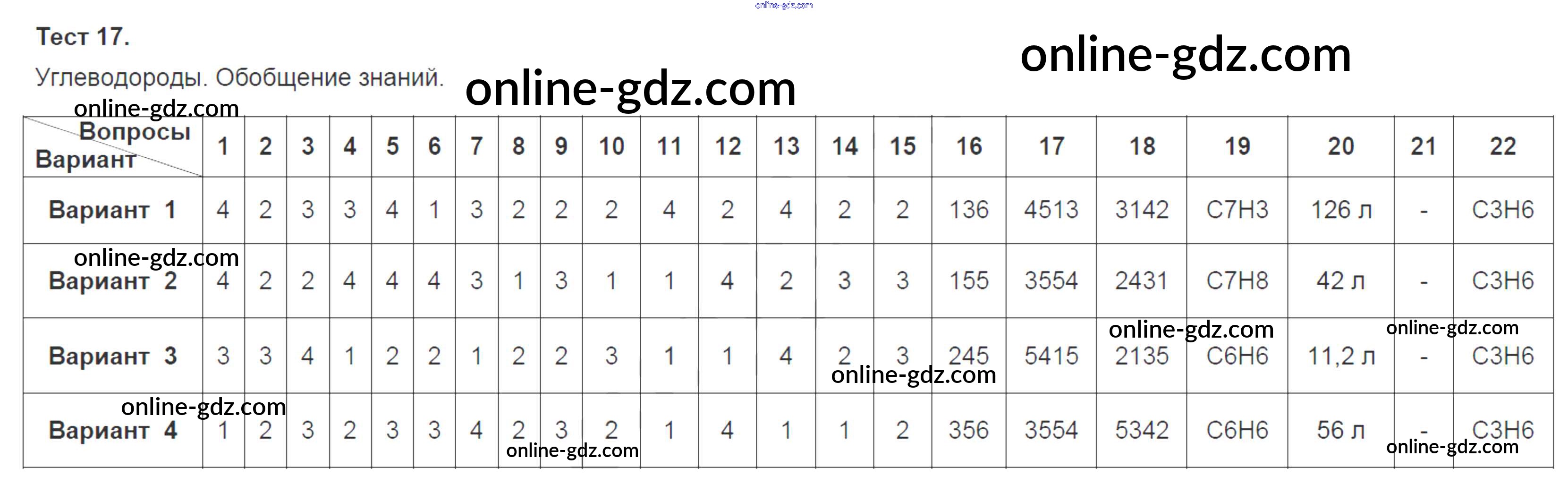 Готовые домашние задания по Химии за 10 класс Тесты Боровских УМК 2013 - Тесты 17