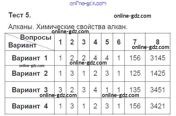 Готовые домашние задания по Химии за 10 класс Тесты Боровских УМК 2013 - Тесты 5