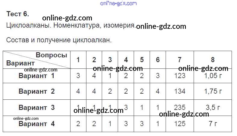 Готовые домашние задания по Химии за 10 класс Тесты Боровских УМК 2013 - Тесты 6