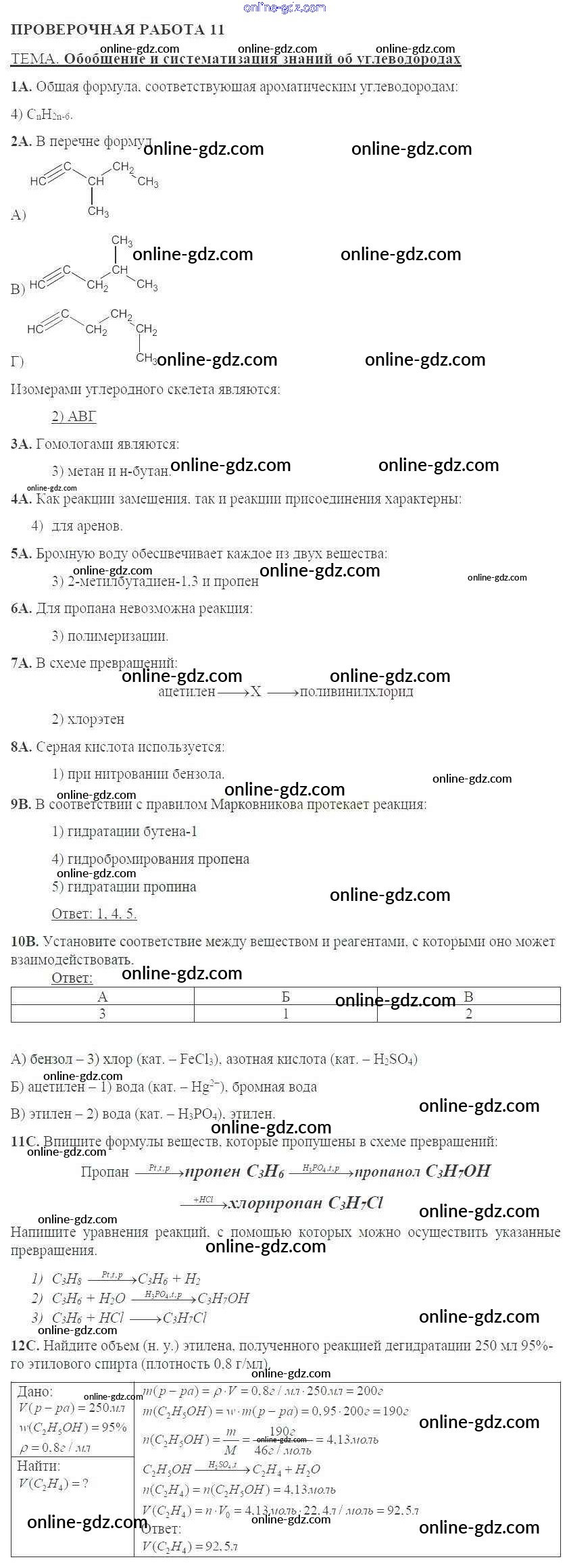 Готовые домашние задания по Химии за 10 класс Тетрадь для оценки качества знаний Габриелян, Купцова 2014 - Проверочные работы 11