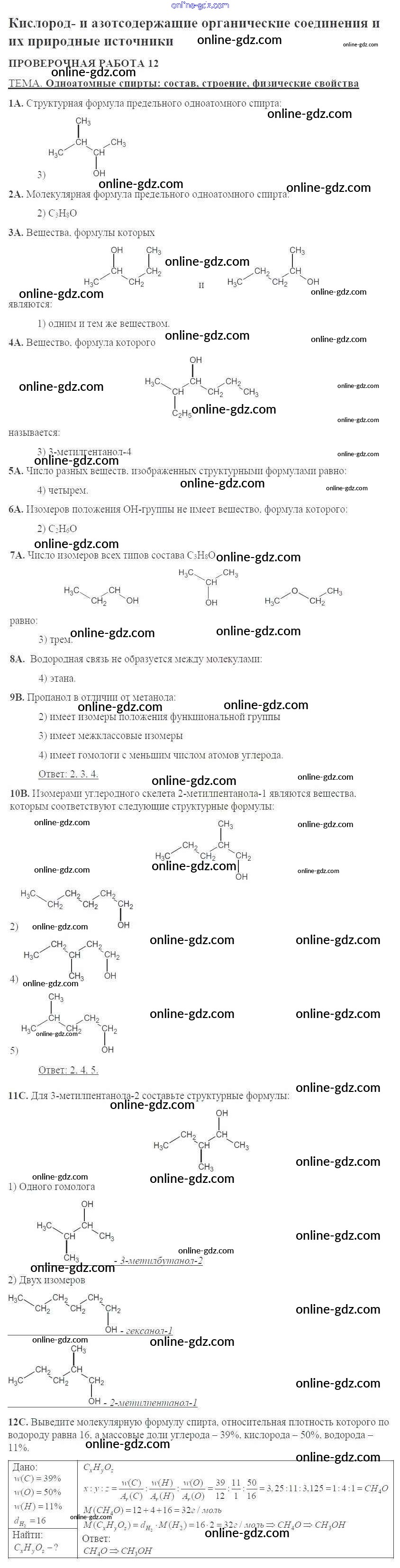 Готовые домашние задания по Химии за 10 класс Тетрадь для оценки качества знаний Габриелян, Купцова 2014 - Проверочные работы 12