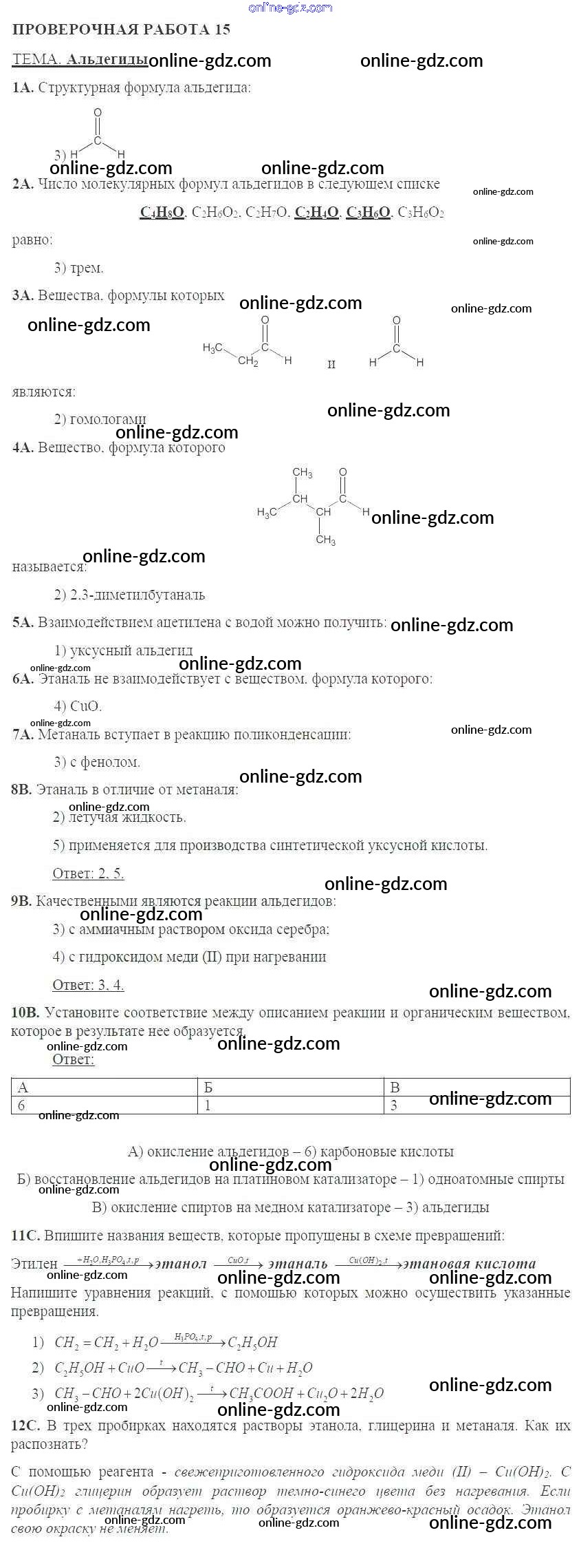 Готовые домашние задания по Химии за 10 класс Тетрадь для оценки качества знаний Габриелян, Купцова 2014 - Проверочные работы 15