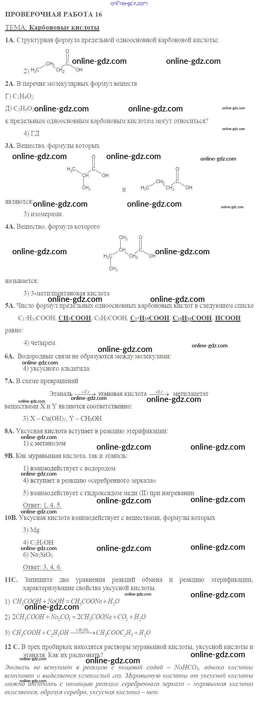 Готовые домашние задания по Химии за 10 класс Тетрадь для оценки качества знаний Габриелян, Купцова 2014 - Проверочные работы 16