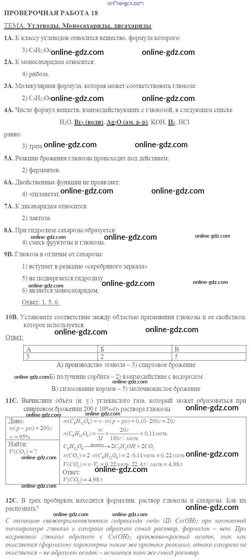 Готовые домашние задания по Химии за 10 класс Тетрадь для оценки качества знаний Габриелян, Купцова 2014 - Проверочные работы 18