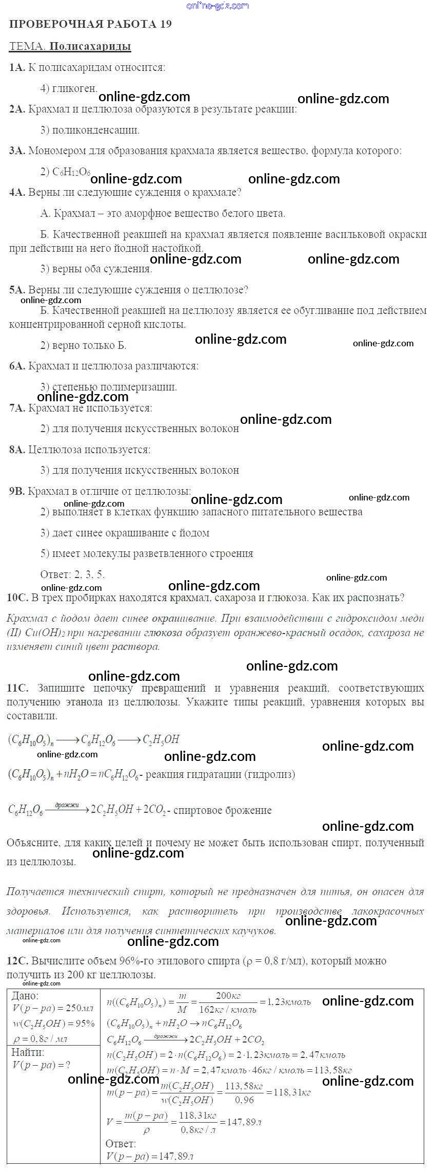 Готовые домашние задания по Химии за 10 класс Тетрадь для оценки качества знаний Габриелян, Купцова 2014 - Проверочные работы 19