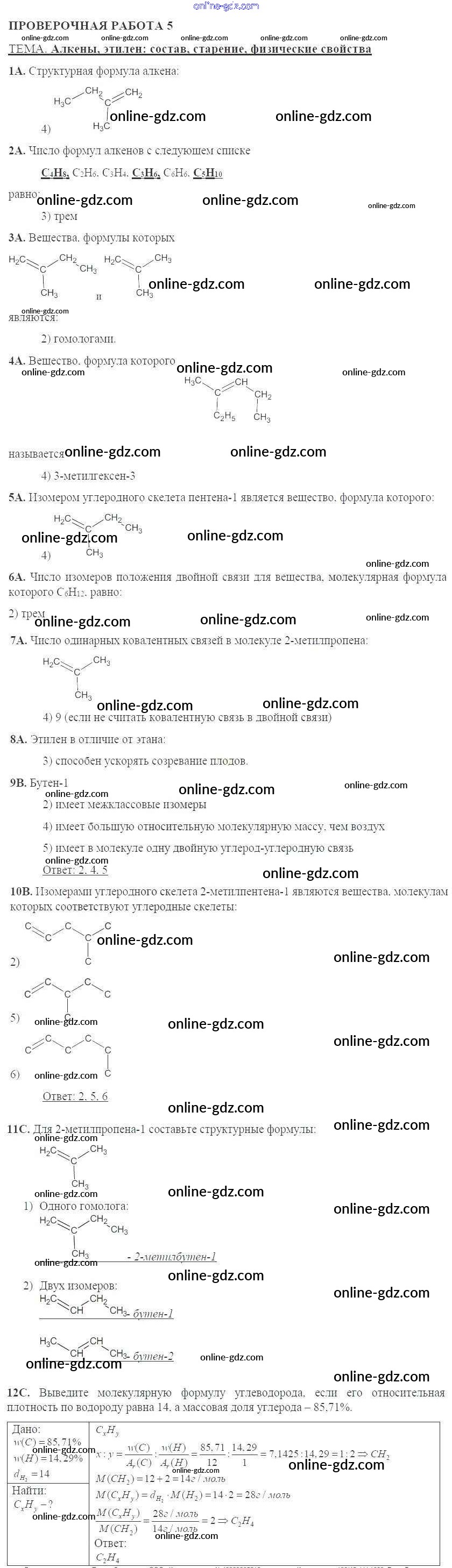 Готовые домашние задания по Химии за 10 класс Тетрадь для оценки качества знаний Габриелян, Купцова 2014 - Проверочные работы 5