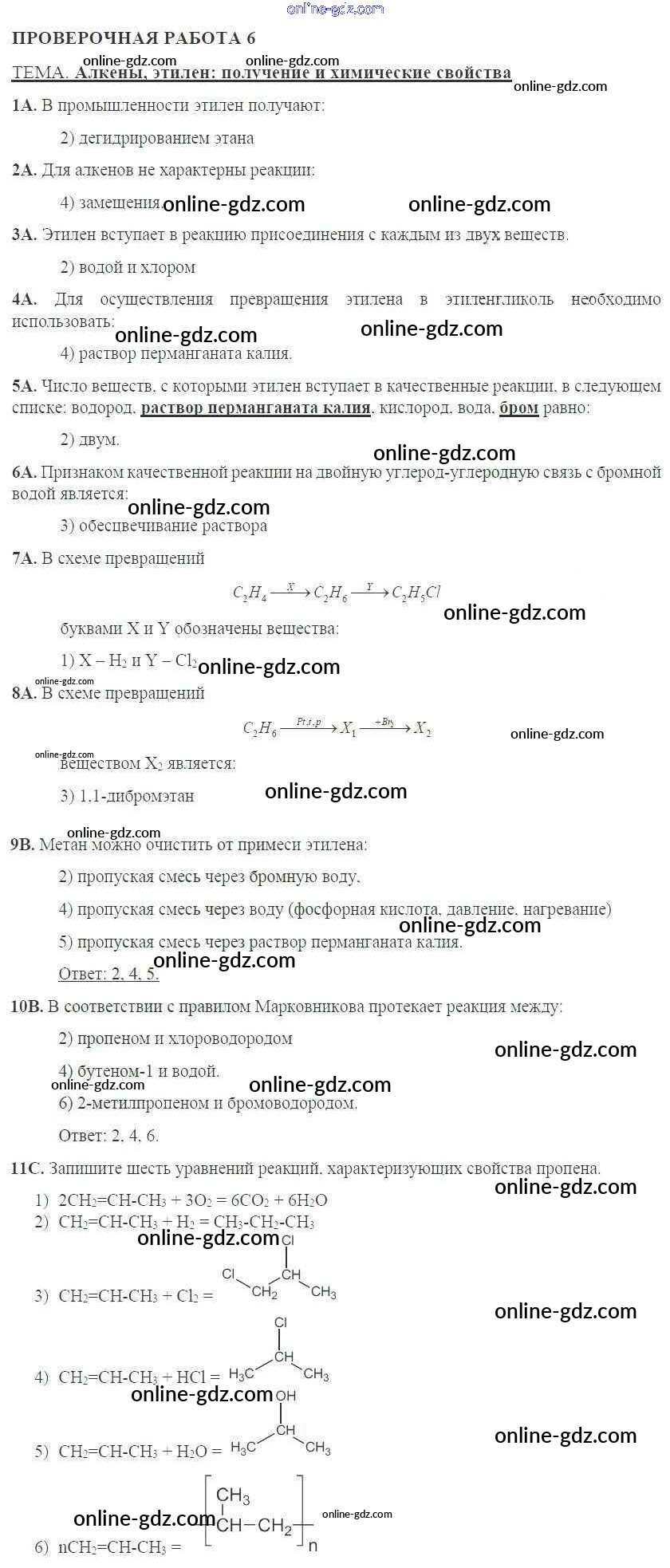 Готовые домашние задания по Химии за 10 класс Тетрадь для оценки качества знаний Габриелян, Купцова 2014 - Проверочные работы 6