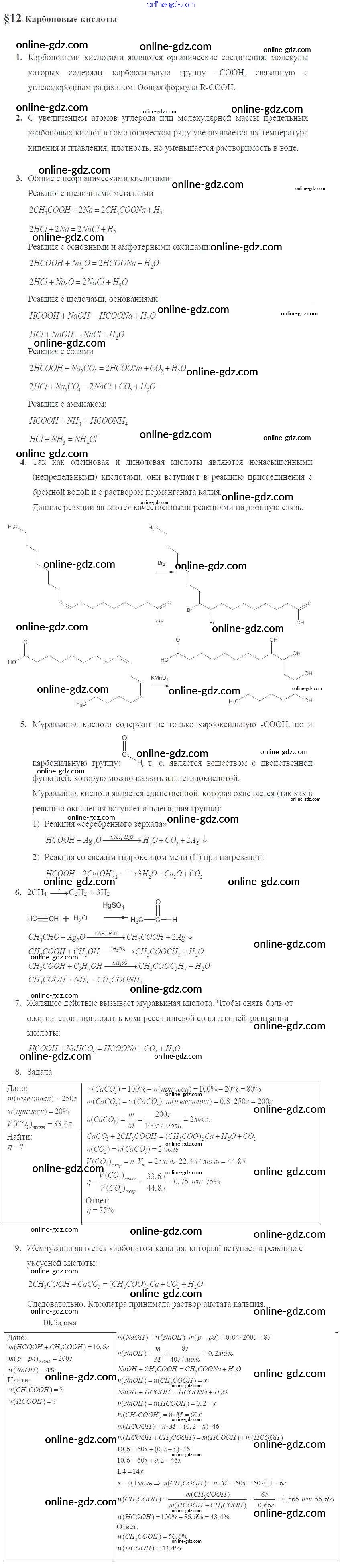 Готовые домашние задания по Химии за 10 класс Учебник Габриелян Вертикаль Базовый уровень 2015 - Параграфы 12