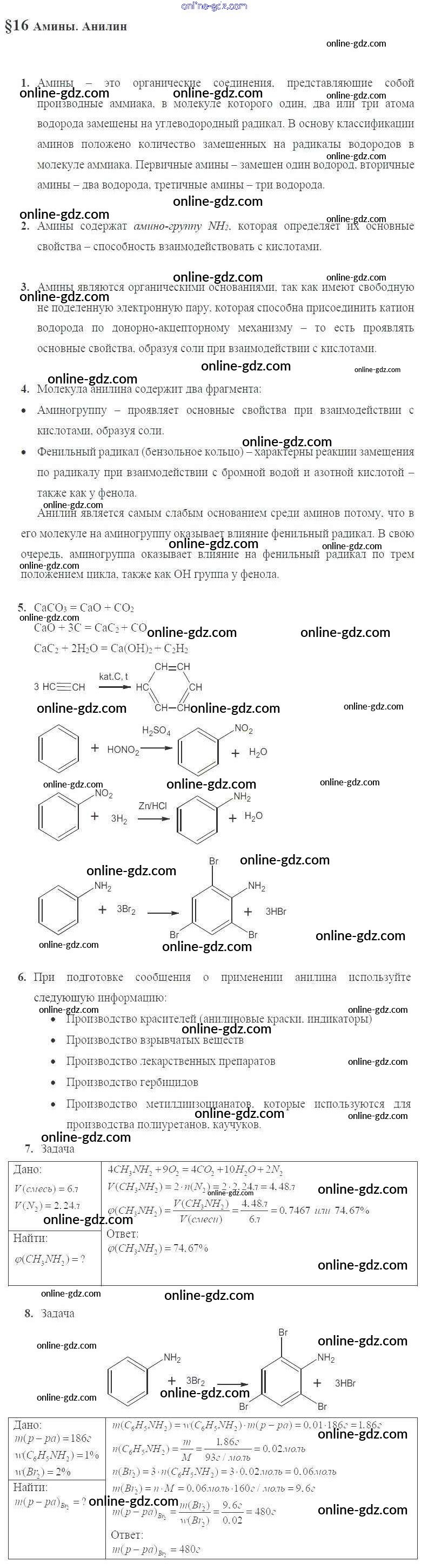 Готовые домашние задания по Химии за 10 класс Учебник Габриелян Вертикаль Базовый уровень 2015 - Параграфы 16