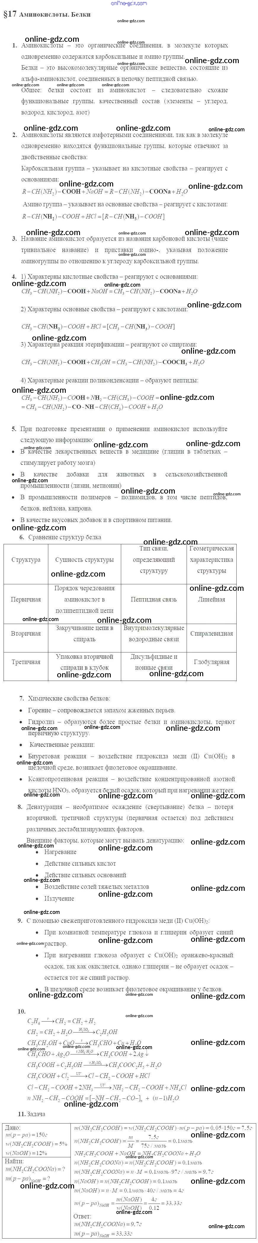 Готовые домашние задания по Химии за 10 класс Учебник Габриелян Вертикаль Базовый уровень 2015 - Параграфы 17