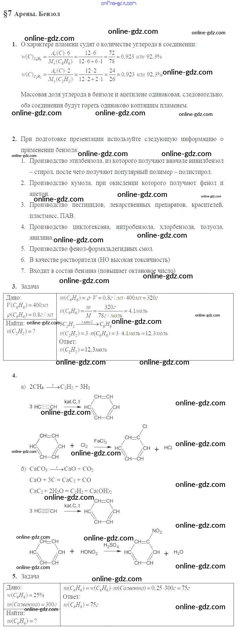 Готовые домашние задания по Химии за 10 класс Учебник Габриелян Вертикаль Базовый уровень 2015 - Параграфы 7