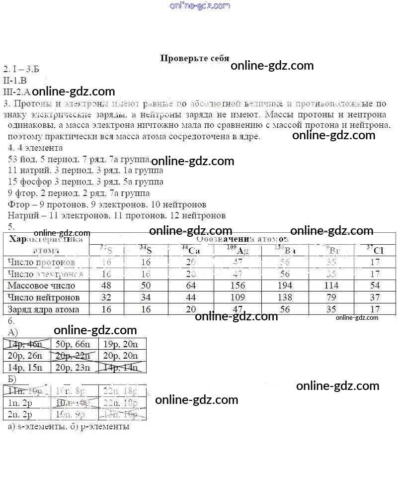 Готовые домашние задания по Химии за 11 класс Рабочая тетрадь Габриелян, Яшукова Базовый уровень 2014 - Основные сведения о строении атома Проверьте себя
